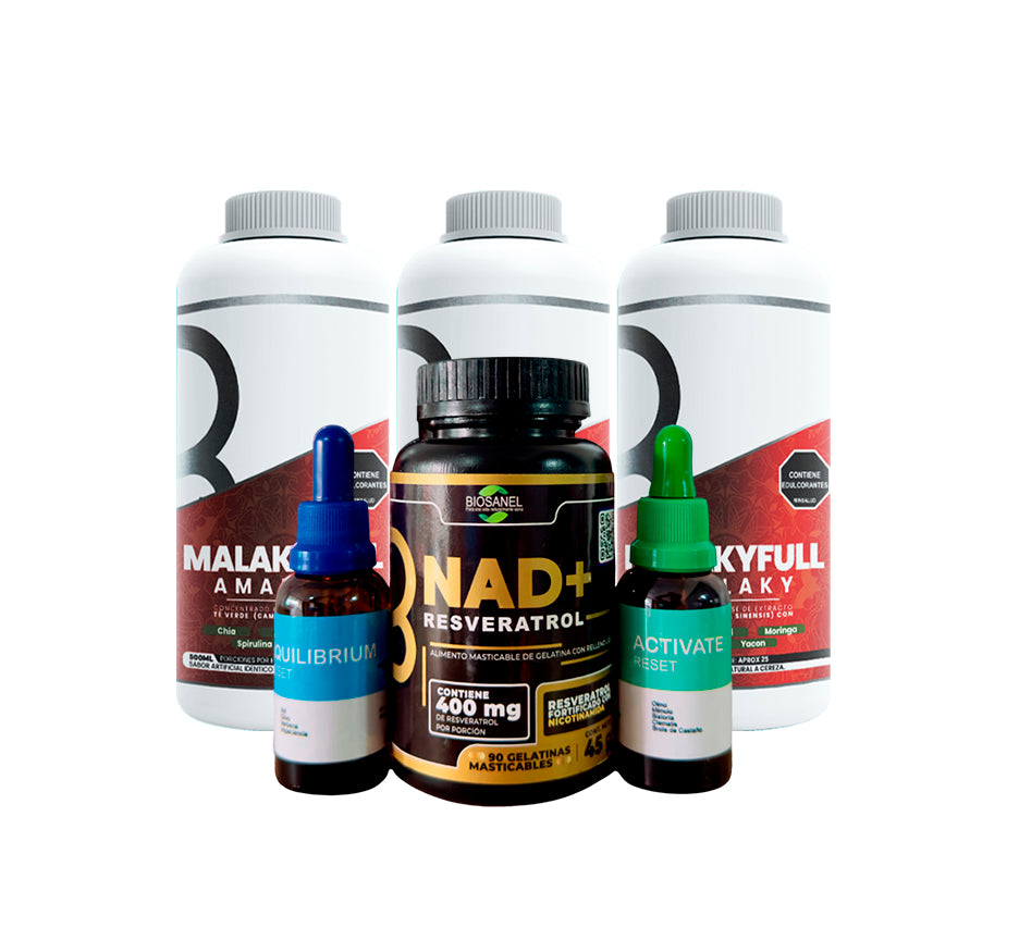 La Ancheta Biosanel reúne una selección especial de suplementos y esencias florales diseñadas para acompañar tu bienestar, tu energía y tu equilibrio emocional. Incluye 3 botellas de MalakyFull, Active Reset, Equilibrium Reset y NAD+ con Resveratrol. Ideal para quienes buscan una rutina natural de autocuidado.